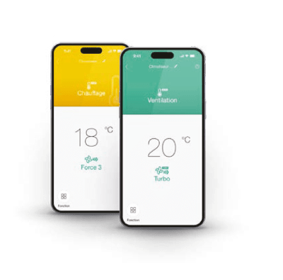 L’application Heiwa Clim, permet de contrôler votre pompe à chaleur Air/Air Essentiel Zen+, où que vous soyez.